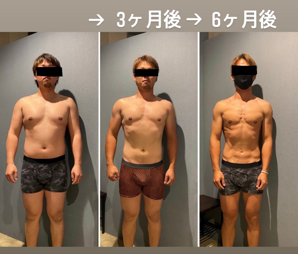 最初の3ヶ月は主にダイエットを目的としたプランで体重を落としながら体脂肪率26%→18%に改善。その後、除脂肪体重を落とさないようトレーニングと食事のプランを調節し体脂肪率11%まで絞りました。体脂肪率を下げた状態から再増量することで無駄な脂肪増を抑えながら筋肉量UPが可能になり、ひとまわり大きい引き締まったカラダになります。 体脂肪の減少だけではなく、除脂肪量の向上を目指すことでリバウンドしにくいカラダにしていきます。トレーニングと合わせて重要な栄養戦略についてもその方のライフスタイルに合わせた形で無理なく続けれるプランをご提案します。